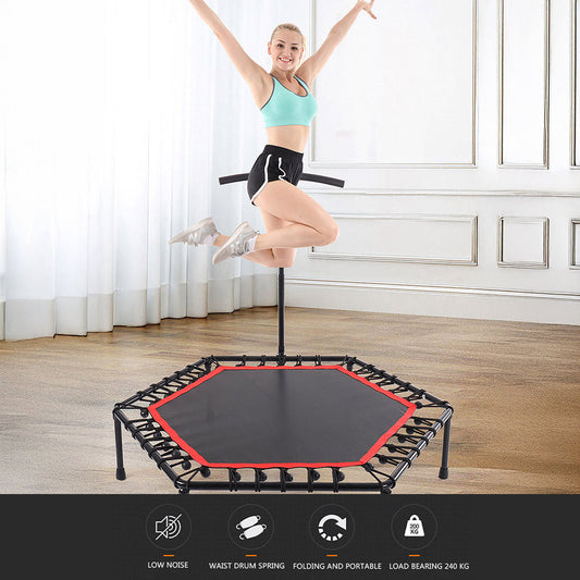 Durable Hexagonal Fitness Trampoline with Adjustable Handle – Ideal for Fun and Safe Home Workouts