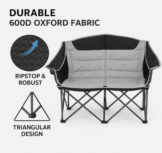 DEMPOWER Camping Chair for Adults, 2 Person Oversized Folding-Portable, 440 Lbs / 200 Kg Capacity,Double Camping Chairs for Picnic Fishing Indoor-Outdoor Activite with Cup Holder and Armrest