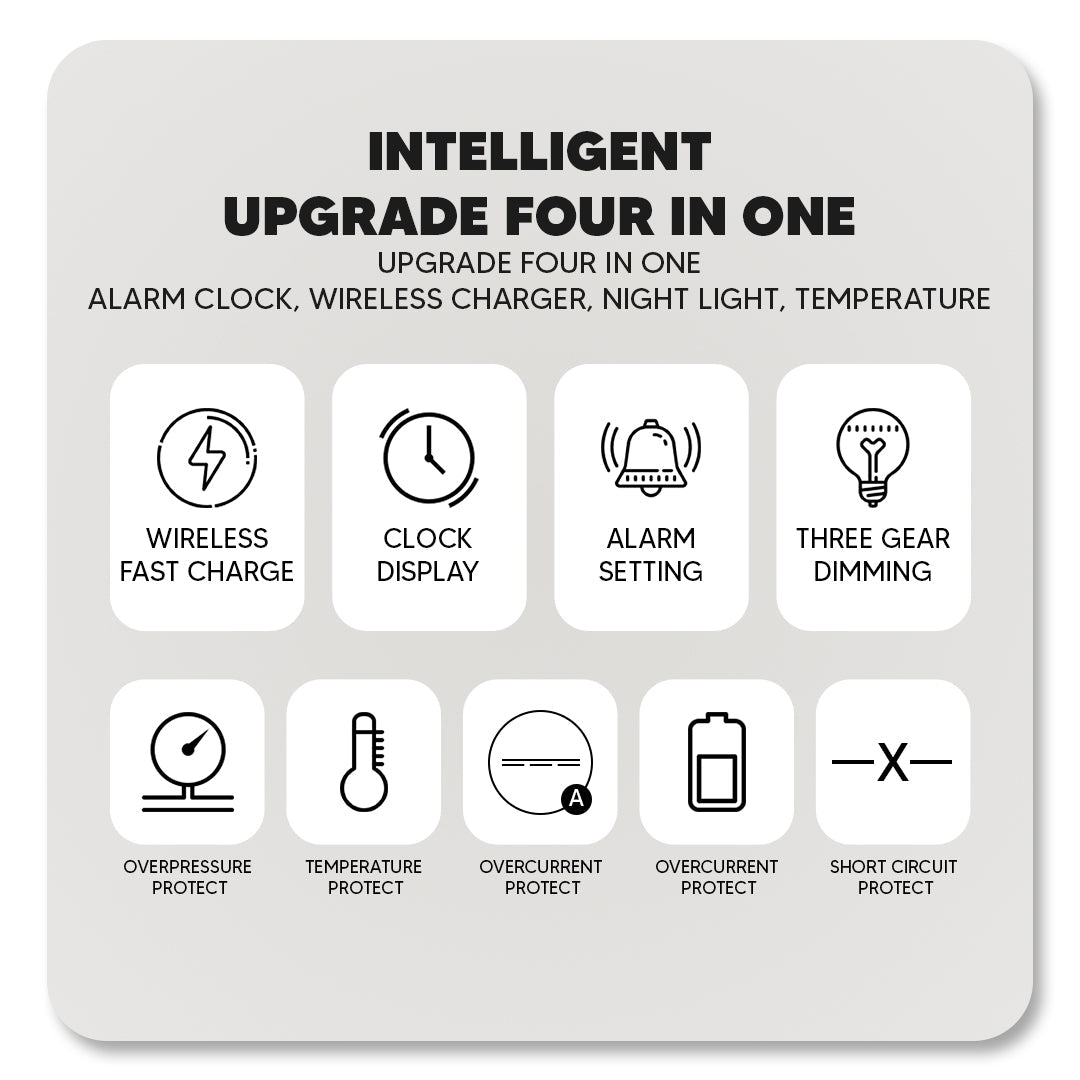 Bluetooth Speaker with 15W Wireless Charging – LED Clock, Alarm, RGB Night Light