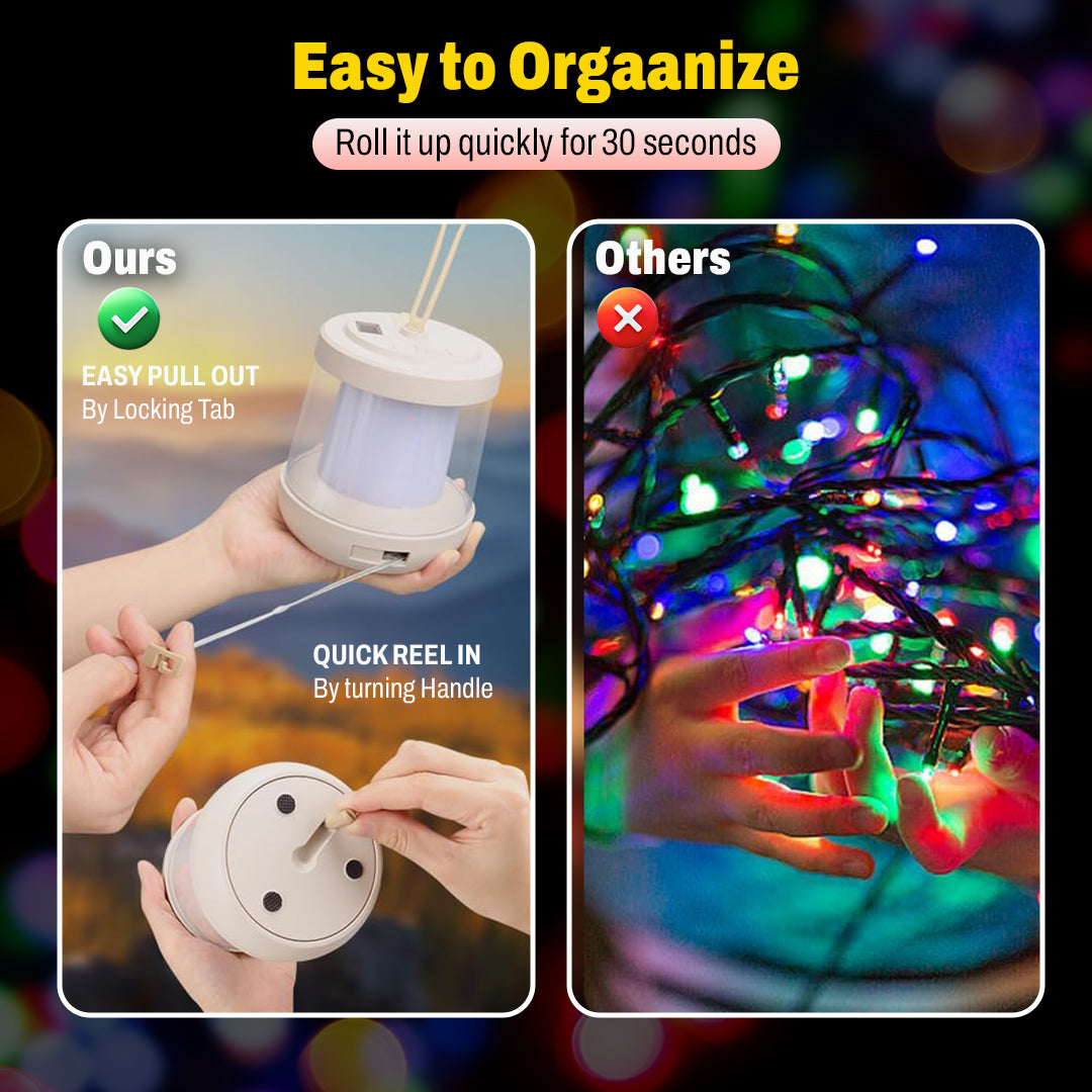Camping Lantern with Power Bank – 3 Light Modes, Waterproof, RGB String Lights