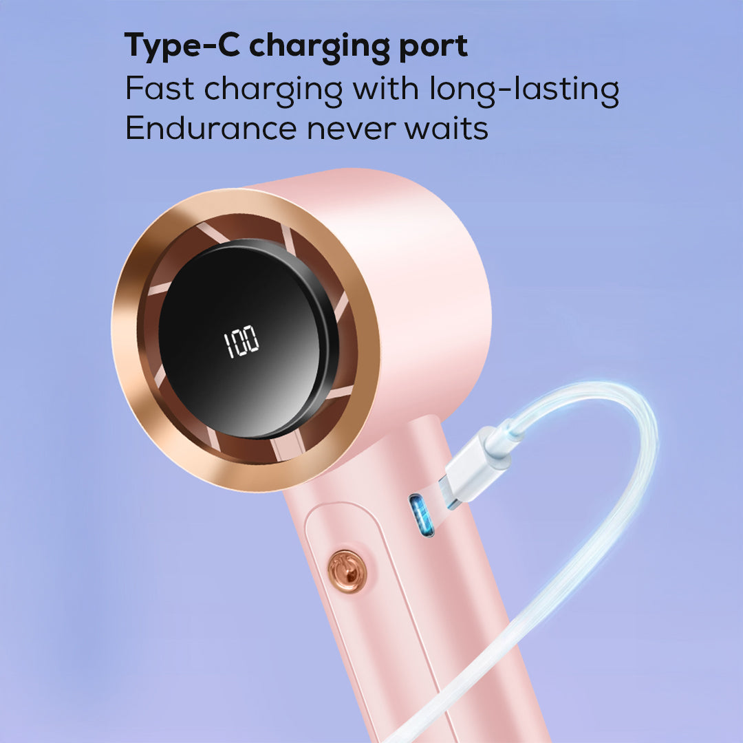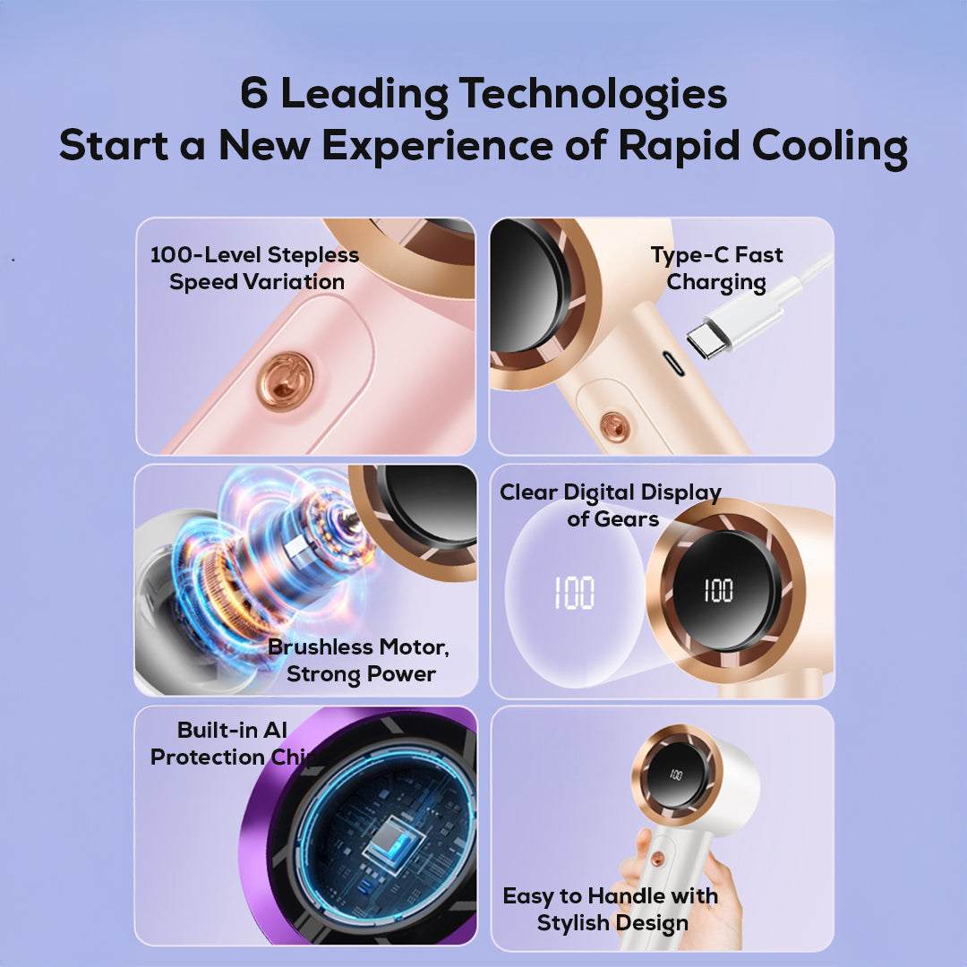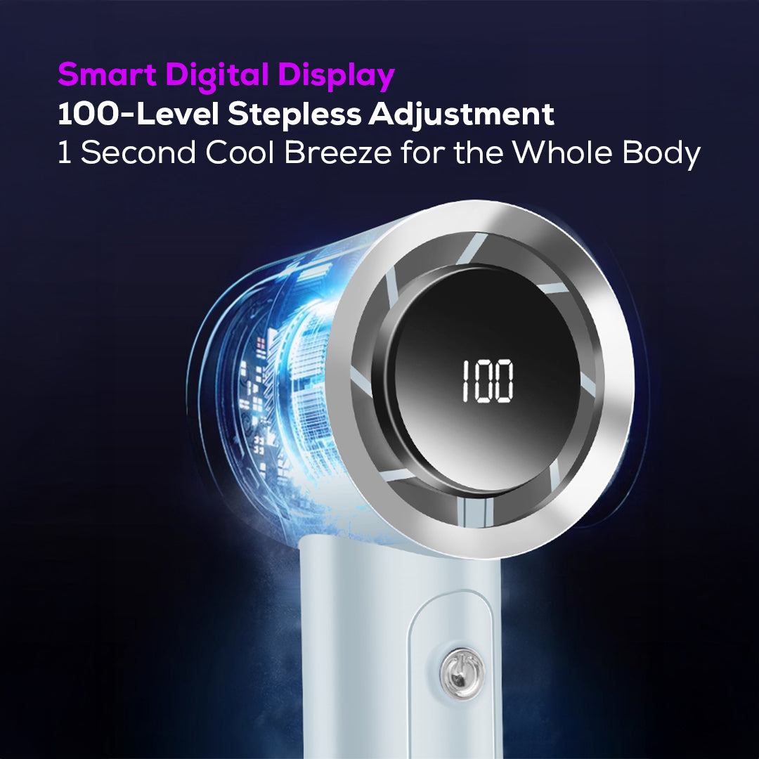Handheld Turbo Fan with LCD Display – 100-Level Speed Control, High-Speed Cooling & Silent Brushless Motor
